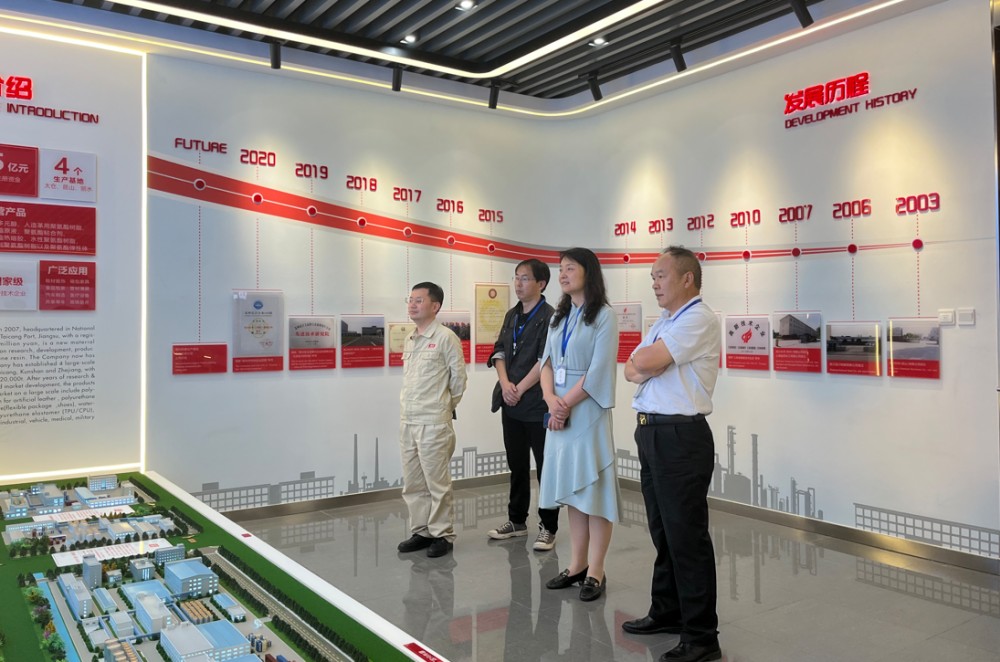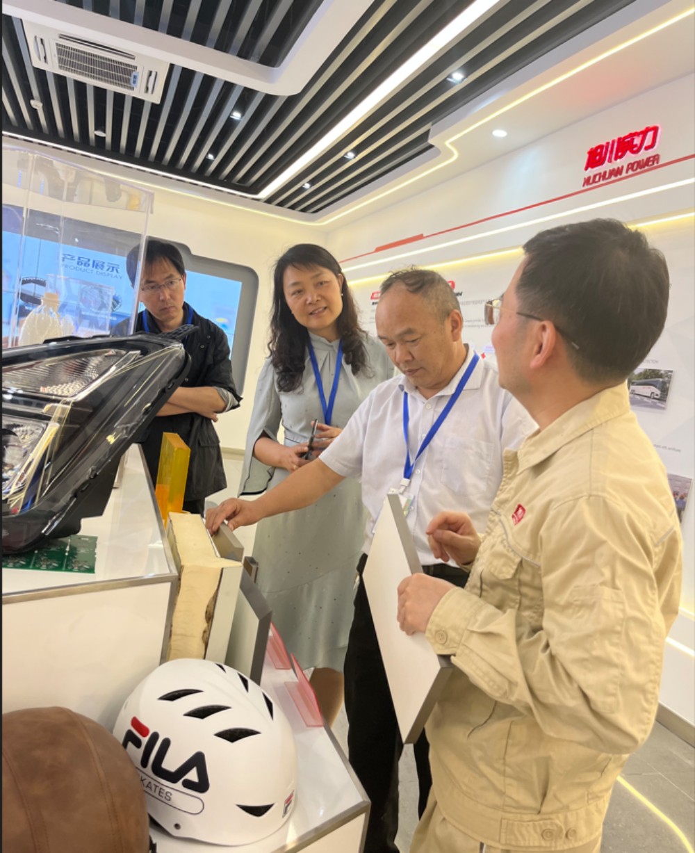 2023年5月18日高新区四小高校长带领教师团队莅临皇冠博彩参观了公司展厅、检测中心和实验室,并与实验员交流了制革打样流程。
